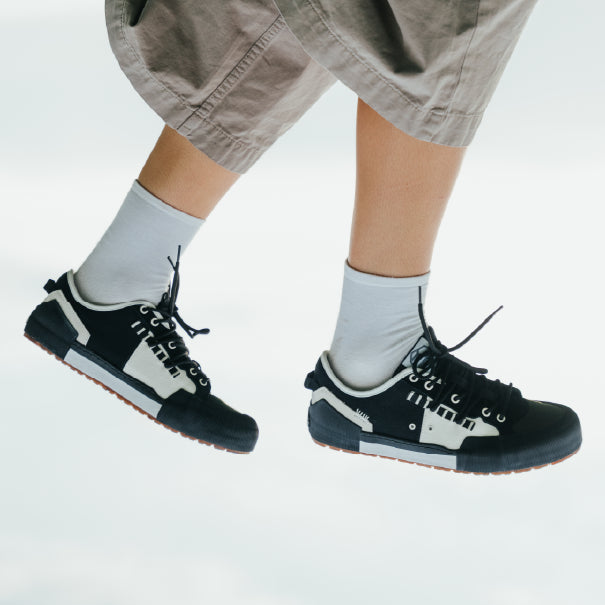 Construction: Handcrafted vulcanized sneaker, partially stitched foxing
