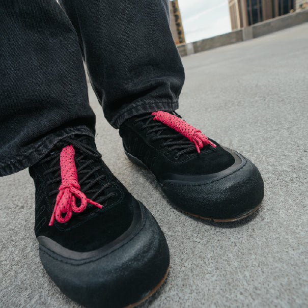 Upper: Suede Leather, Printed Rubber Reinforcement zones, 100 % recycled PET laces, foam padded tongue and versatile style